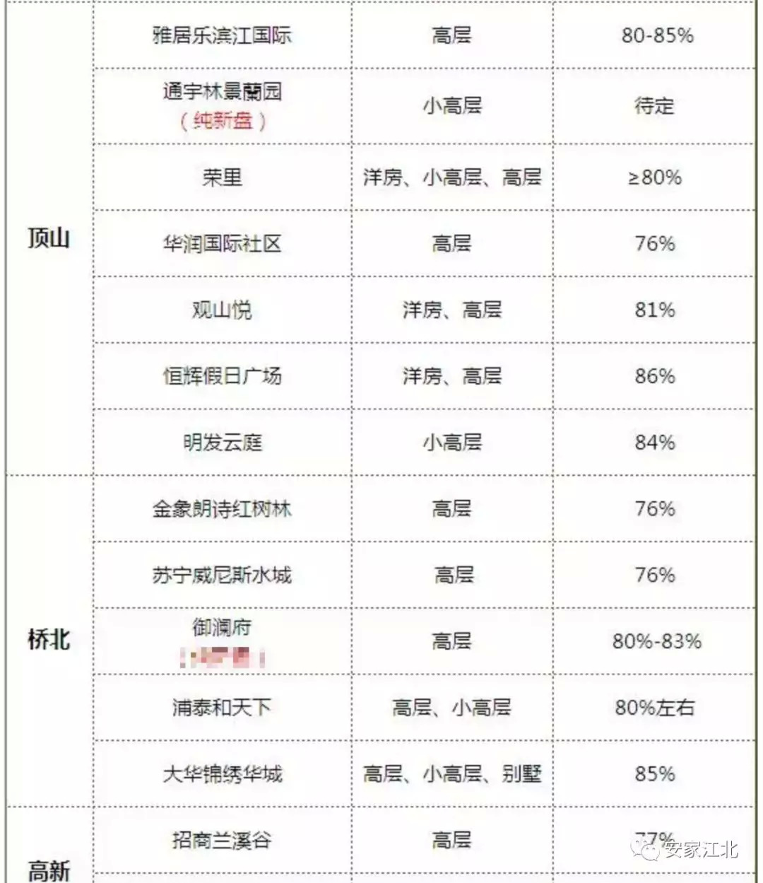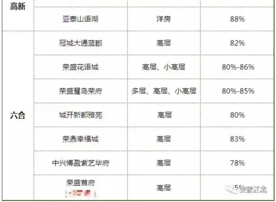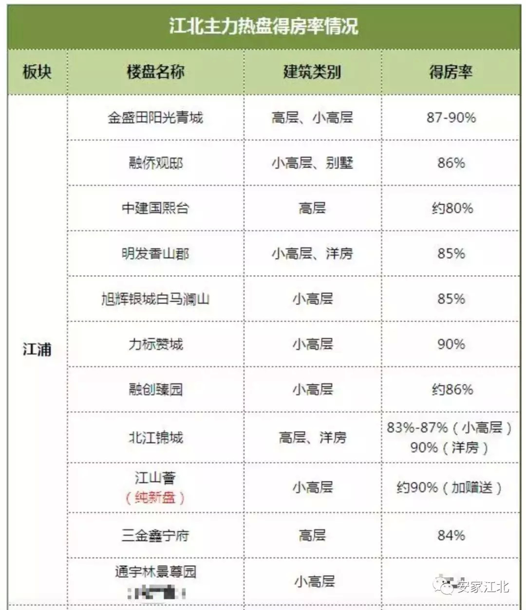 最后附上江北部分热盘得房率表格,希望买房时对大家起到一些帮助!