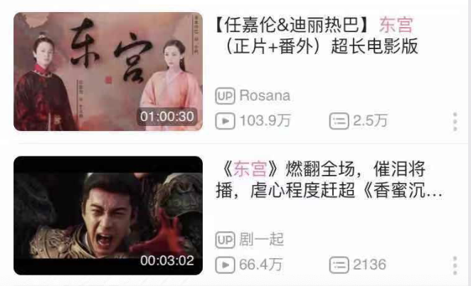 2011年,小说《东宫》宣布卖出电视剧版权。原著作者匪我思存的微博立刻被网友攻陷,网络上掀起了选角的议论热潮。为此,匪我思存连发两条微博表示“拒绝留言提议,拒绝捆绑其他演员炒作”。意难平的粉丝们在B站上传了不少自制的《东宫》混剪视频,其中“迪丽热巴+任嘉伦(正片加番外)”版本热度最高,总播放量超过百万。“胡歌+刘诗诗”版本最常被提起,播放量最多的有50万。