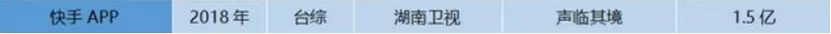 2018年,快手冠名湖南卫视明星综艺《声临其境》花了1.5个亿;2018年,金典牛奶冠名湖南卫视王牌综艺《歌手》花了5个亿。