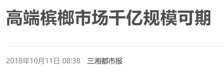 2018年10月,三湘都市报报道了一篇《高端槟榔市场千亿规模可期》——