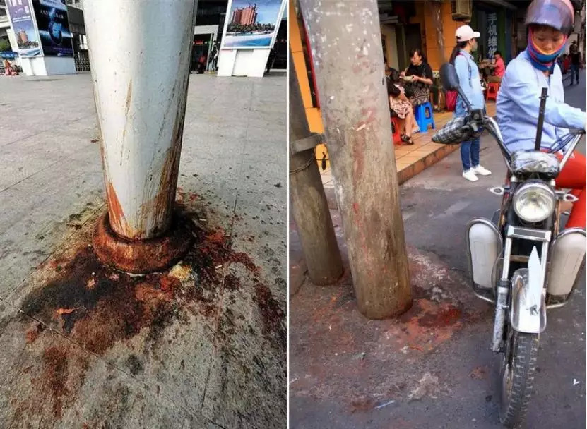 在湖南湘潭,随地可见的槟榔汁,猩红可憎,腥臭难闻。