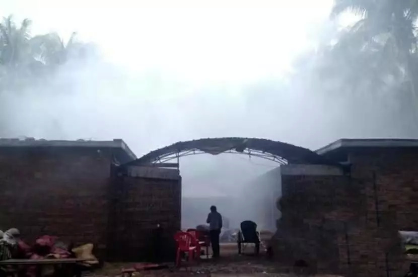 熏制槟榔的车间不堪入目:屋顶四壁焦黑。