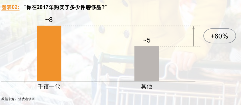 当前,中国千禧一代正在成为推动奢侈品市场发展的重要力量,其购买奢侈品的频次相比年长群体有显著提升(图表02)。
