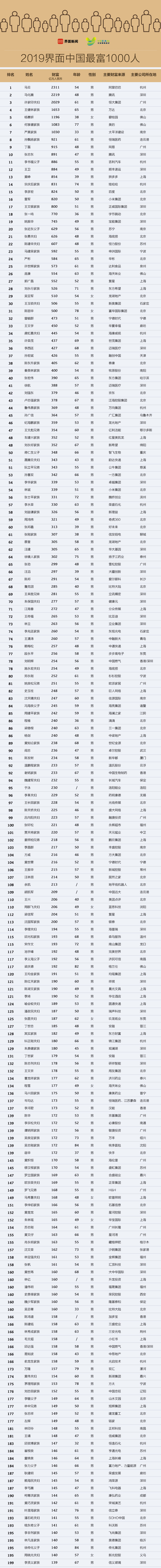 - 2019界面中国最富1000人榜