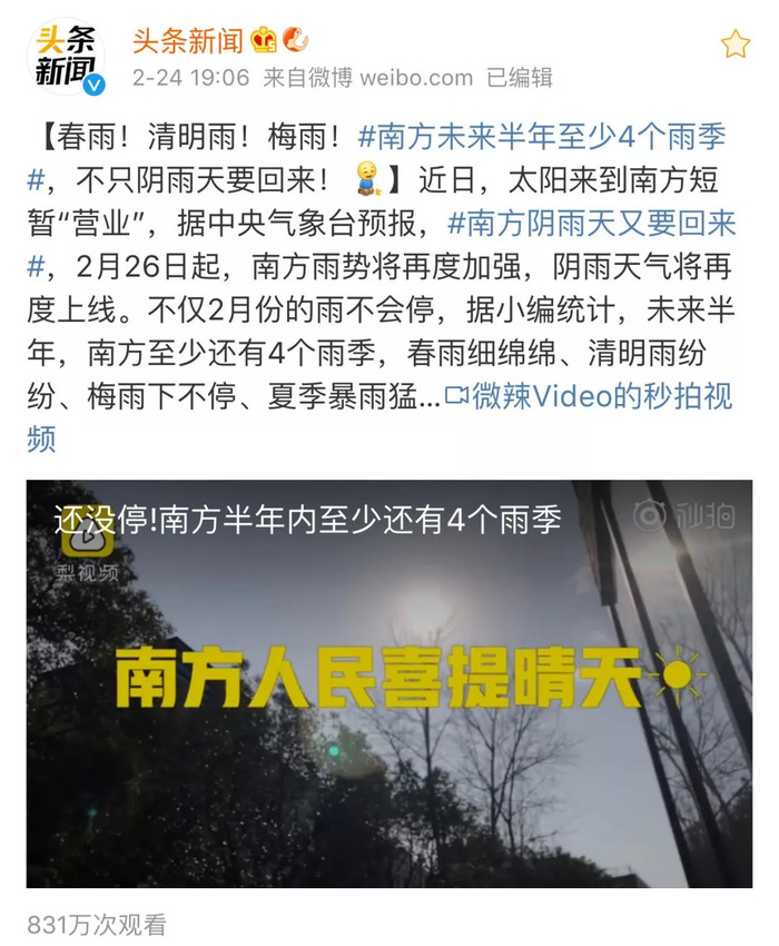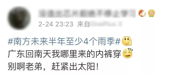 说实话我已经开始有点儿心疼在阴雨中挣扎的南方朋友们了。因为这场持续了半个多月的降雨不但影响了他们的日常生活,甚至还几乎摧毁了他们的精神世界。