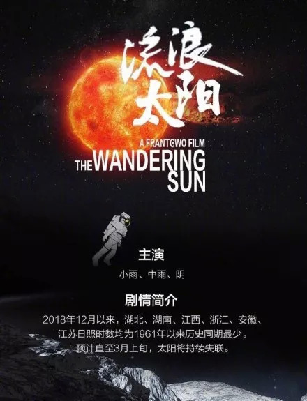据很多南方朋友近十几天对天气的观察,他们发现自从电影《流浪地球》上映之后自己就再也没见到过太阳。于是有人提出了自己大胆的质疑:难道说电影中的情节都是真的?地球或者太阳已经开始流浪了?