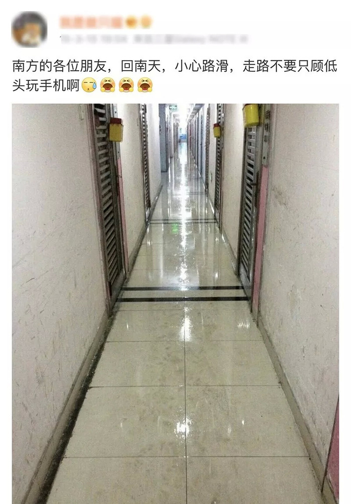 哪怕你是在室内走路,也得时刻小心踩水滑倒: