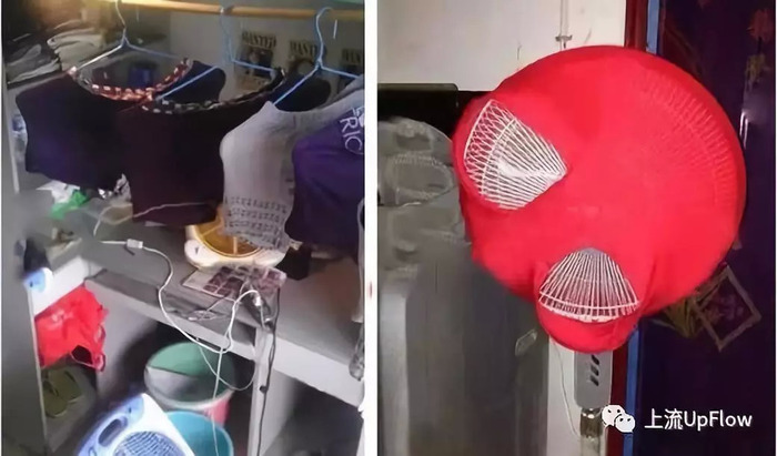 没有空调的大学生们,更是将宿舍里有限的空间和辅助工具发挥到了极致: