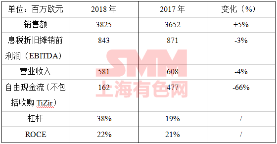 2018年,公司锰业务销售额(不包括矿砂活动)占总销售额月49%,同比2017年增长2%至18.57亿欧元。尽管矿石价格回弹,但受受锰合金利润率的挤压影响,目前的营业收入下降3%至6.99亿欧元。
