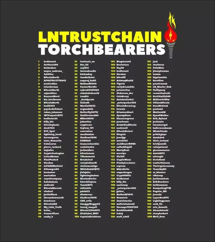 闪电网络火炬接力活动是一位推特名为 hodlonaut 的比特币爱好者发起的,本意是想测试社区的信任度。这个活动的要求是每位火炬手往下传递的时候增加一定量的金额,比如 1 万聪,通过闪电网络把这笔钱转给下一位火炬手,直到达到闪电网络的转账上限 430 万聪。