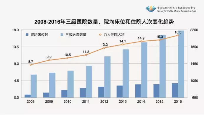 到了2017年,情况更加严重。国家卫健委发布的《2017年我国卫生健康事业发展统计公报》显示,2017年,全国住院总量比上年增加1708万人(增长7.5%),年住院率由2016年的16.5%增加到17.6%。\