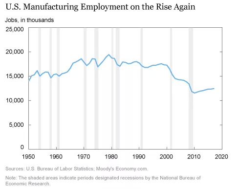 参考资料:Jaison R. Abel and Richard Deitz, "The (Modest) Rebound in Manufacturing Jobs",Liberty Street Economics, Federal Reserve Bank of New York, 4 February 2019
