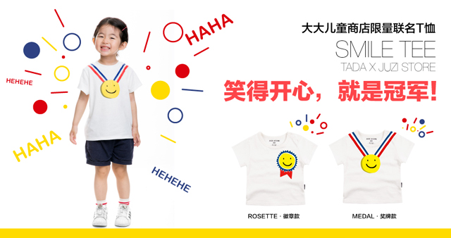 除了线上店,TADA也以Pop-up店的形式多次在城中快闪亮相,与高岛屋、新天地都合作举办过类似“玩具小展览”的线下活动,甚至搭布景做一些小演出。“看到老顾客带着自己的小孩来玩还蛮开心的,平常都是大人之间交流,这时候有机会能直接观察到小朋友对产品的反馈。”对于未来是否有开实体店的打算,Niea的设想是不想它只是“一个店”的店,“我们都很喜欢东京表参道上的Crayon House,它是一个日本知名绘本作家开的的亲子空间,有三四层楼高,拥有绘本、玩具、女性产品和餐厅,非常适合妈妈和小孩一起来。” 目前TADA也开始尝试设计自己的儿童产品。这个儿童节,它和本土童装设计品牌JUZI STORE合作,以“smile champion”为主题推出了两款限量版儿童体恤,上面的笑脸就像它常说的快乐宣言,“总之是have fun,我们一起玩吧。”ta-da!