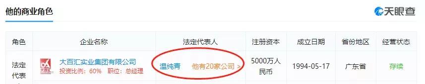 截至目前,温纯青名下公司多达20家,涵盖多个领域。