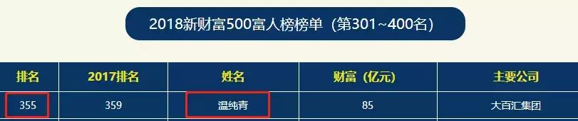 侦探君还发现,在2018新财富500富人榜榜单上,温纯青以85亿身家位列第355名。