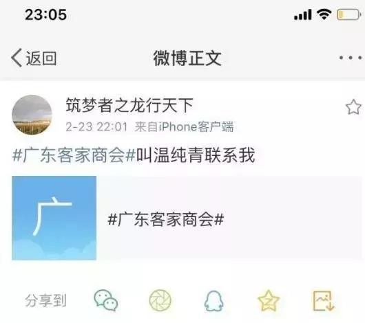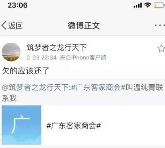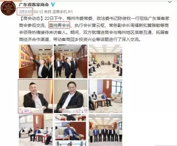 侦探君查看广东省客家商会的微博发现,在2月23日当天,商会还发了一条温纯青前一日的动态。