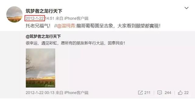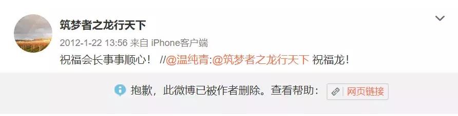 两人在公开场合来往最密集的时候应该是2012年。这一年,黄有龙和温纯青在微博多番互动。2012年的1月份,两人就曾互动三次。