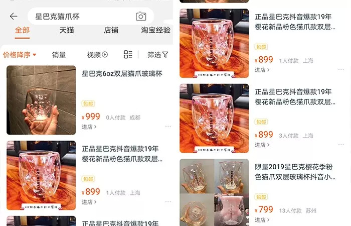 于是,这款官方售价199元的杯子,价格逐渐抬升到了一个夸张的地步,到我昨天写这篇文章的时候,淘宝显示是900+的价格。