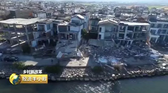 除了拆除客栈和民宅,2018年12月份,大理州开始全面停止洱海海东开发区建设。2017年底开始,进入的恒大、中梁地产、华侨城、绿城、碧桂园、万科等品牌房企也停下了在建项目。今年一月上旬,《经济半小时》记者随机走访了大理几个在建的楼盘,发现基本都已经暂停施工了。