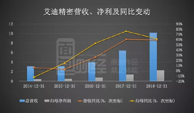 液压行业的“后起之秀”艾迪精密(603638.SH)发布2018年度报告,数据显示公司全年营收10.21亿,归母净利润2.25亿,同比分别增长59.15%和61.2%。与此同时,公司经营性现金净流入6538.81万元,同比减少46.82%,与公司业绩走势相反。