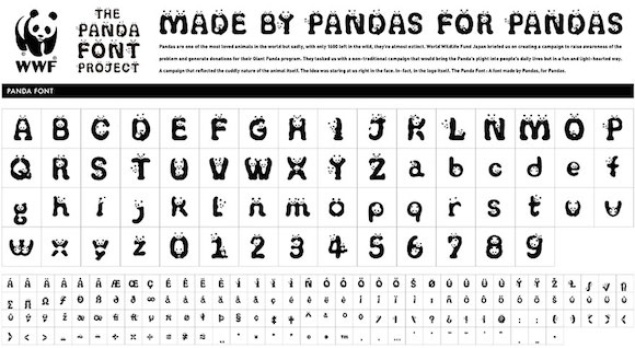 世界自然基金会(WWF)日本分部近日设计了一套萌萌的熊猫字体,以此来提高人们对大熊猫的保护意识。这套设计是WWF和奥美日本(Ogilvy & Mather Japan)合作完成的,每个字母里都藏着一只或好几只大熊猫。