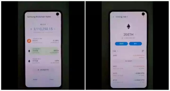 Galaxy S10 中的数字货币钱包 | 截图自网络视频