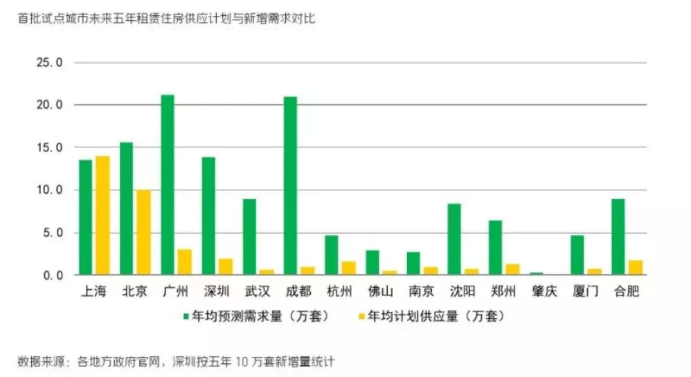 在研究了这批试点城市房源情况后,我们发现,大部分城市的租赁房源都存在缺口。