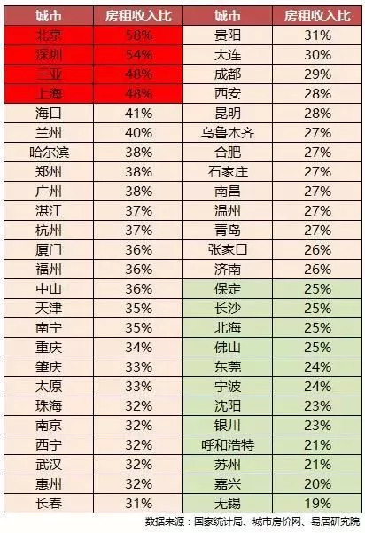 有一个奇怪的“房格尔系数”,指的是每月房租对收入的占比。当这个指数在30%以下时,恭喜你,获得了具有幸福感的生活。然而根据上海易居研究院发布的《50城房租收入比研究》来看,全国大部分经济发展较好的城市,都难以达到这个水平。
