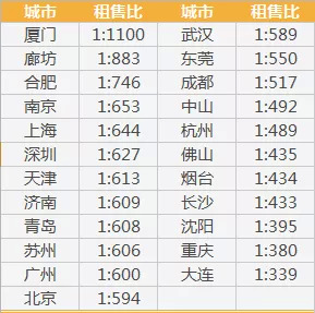 2017年8月,《利用集体建设用地建设租赁住房试点方案》发布,全国13个城市开展利用集体建设用地建设租赁住房试点。这13个城市无一例外都存在着租售比不合理的问题。