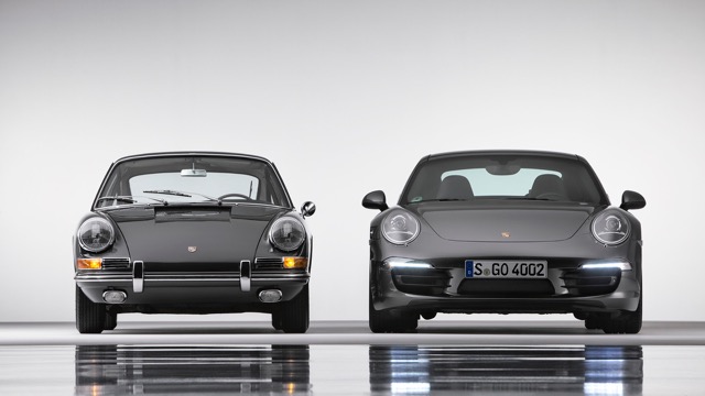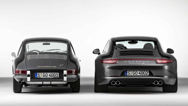 1964年的第一代保时捷911和50年后的2014年发布的50周年纪念版。