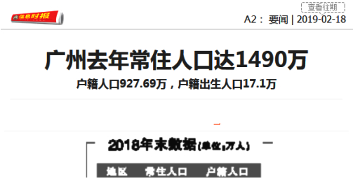 在前些年发布的《广州市城市总体规划(2017-2035)》中,广州表示,要按照2500万常住人口进行公共资源配置。而2018年年末,广州市常住人口仅有1490万人,远低于规划中的常住人口数量目标。
