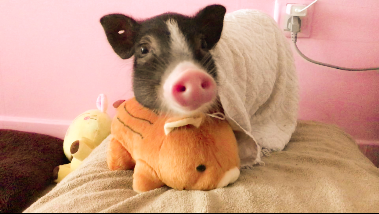 当时Kate在外地,专门改签了机票赶回来,就怕见不到它最后一面。还好经过兽医的诊治,小猪终于不那么虚弱了,等她赶回家,已经可以站起来迎接她。