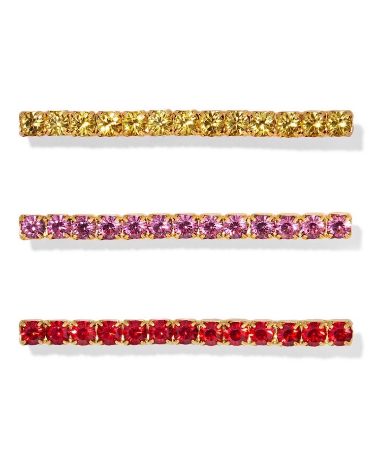 另一种长发夹的复兴或许与近几年时尚界的个性化趋势有关——字母发夹。不管你来自哪个国家,你可能都能从古老的饰品盒中翻出来一只带着英文字母的长发夹,或许当时年纪尚小的你并不一定能弄懂上面的意思,但如今,你可以选择符合你心意的英文单词来展现你的个性宣言,就像近几年频繁出现在各大品牌设计中的字母印花衬衫,但这一次,你可以把它放在更显眼的地方。