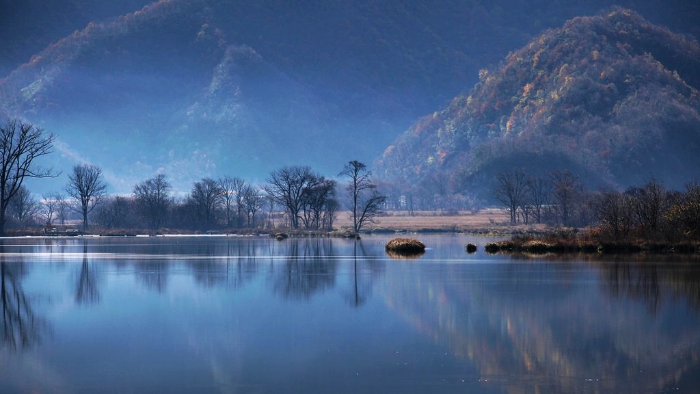 谢海盟:我必须承认,在剧本讨论与筹备阶段,我们从未意识到“山水画电影”这一构想,当我们的第一遭目睹大九湖云兴霞蔚的湖景时,方才恍然大悟,原来山水画真是写实的哪!也是侯导第一次发下豪语,他要拍摄一部傅抱石风格的电影。