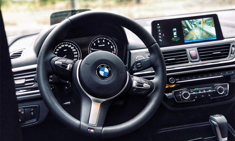 拉开车门,手里M标志的“丁字裤”运动方向盘总有想要“盘他”的冲动,Nappa真皮细腻的包裹与粗细适中的手摸造型让劈弯中左右手交替掌控感更加得心应手,低头一看六点方向三色“M”标识激起驾驶的欲望,而在120i M上官方还为其搭载了让部分3系车主垂涎三尺的换挡拨片,这也是一种信仰了吧。