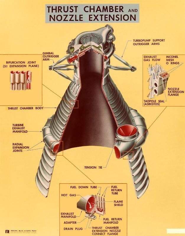 因此,工程师们将喷管的结构做成夹层,让推进剂在进入燃烧室前,先在夹层里高速流动,带走热量,从而保证喷管不被烧毁。
