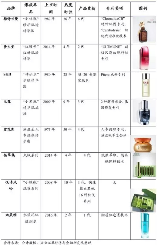 除了小棕瓶,资生堂红腰子、SK2神仙水、兰蔻小黑瓶等经典产品均为其核心成分申请了专利保护。