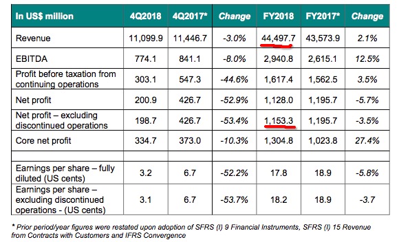 据2月21日丰益国际发布的业绩快报显示,该公司2018年收入444.98亿美元,同比增幅2.1%,扣非净利润为11.53亿美元,同比下降3.5%。