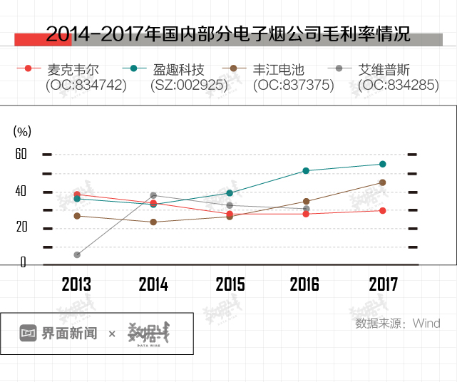 电子烟公司的毛利率均在30%以上,而且都在逐步上升。