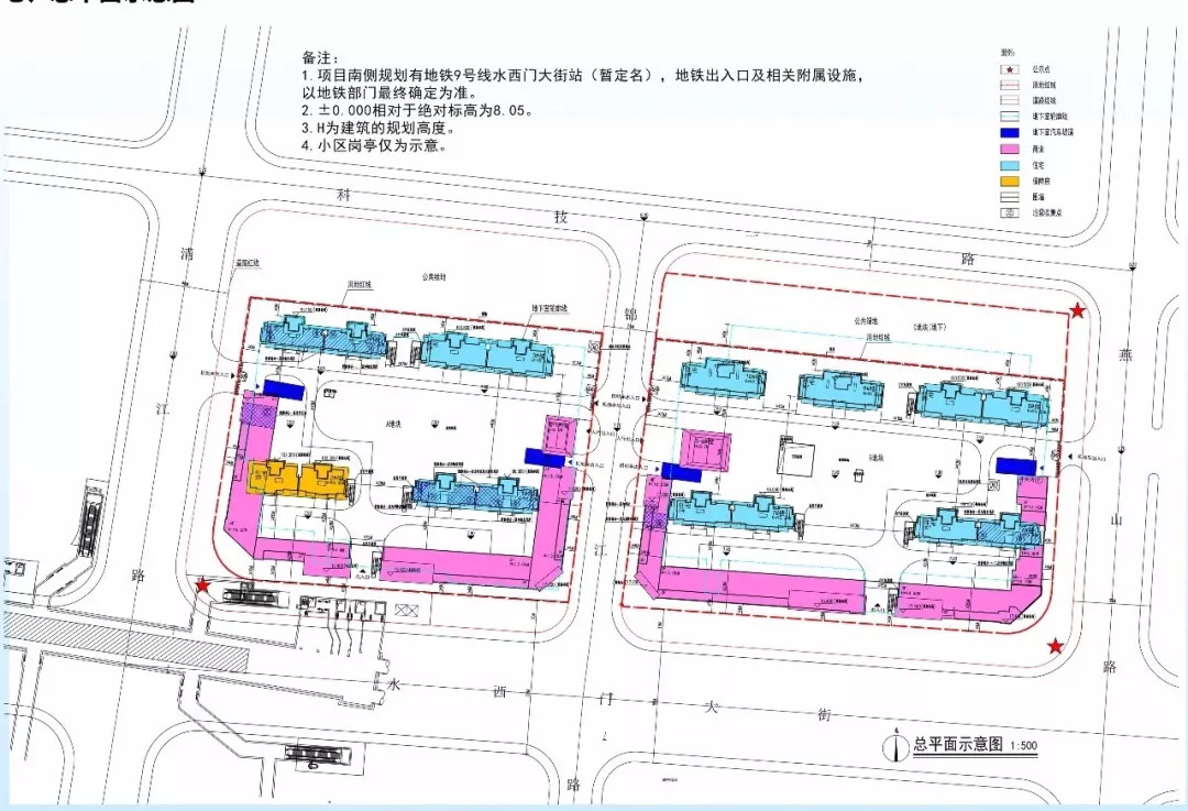 附近有地铁2号线直达,地铁9号线水西门大街站(暂定名)。