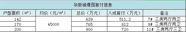 华新城璟园首付情况: