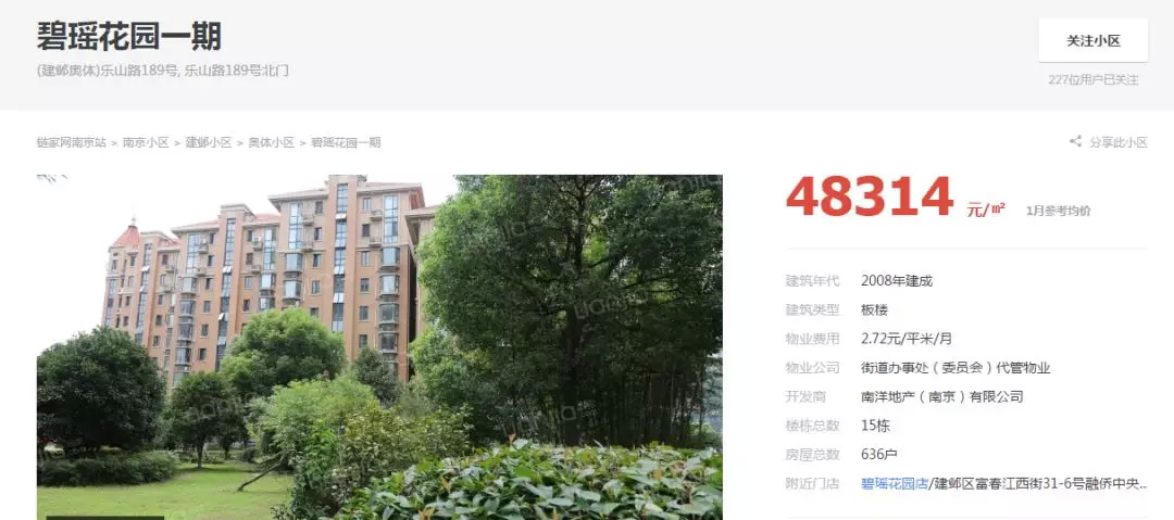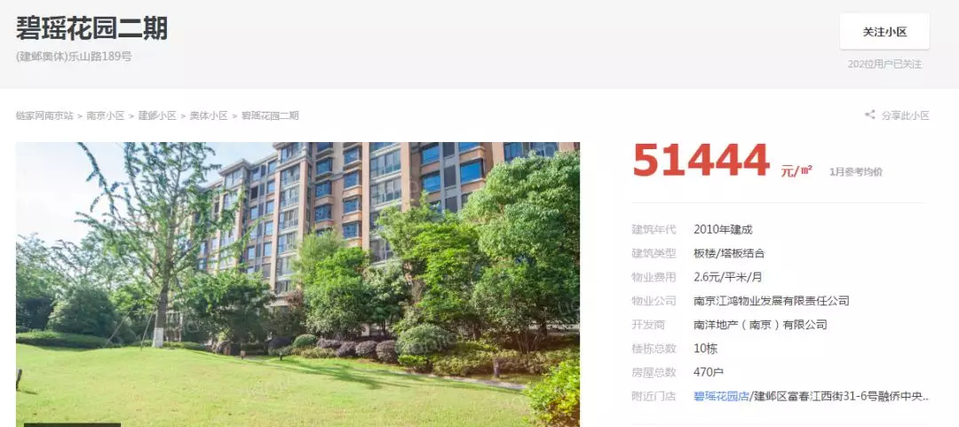 目前碧瑶花园一期和二期的二手房价格相差大约3000元/㎡,分别是48314元/㎡和51444元/㎡。