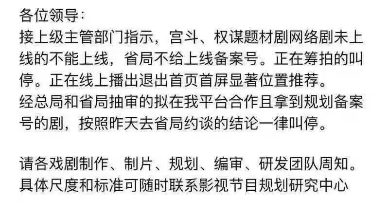 昨日,一则禁播宫斗、权谋题材网剧的消息在网上流传开来。