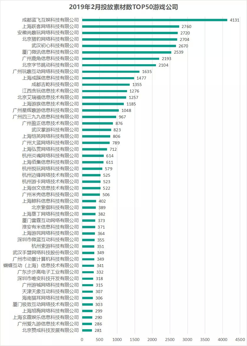 二、公司:单日最高有280家公司买量,蓝飞互娱拿下投放力度TOP2