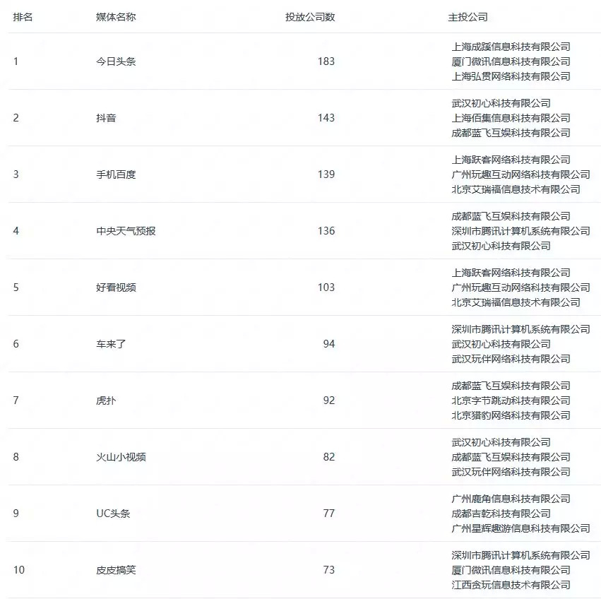投放公司数排名