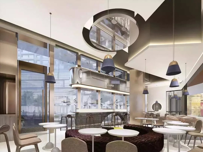 奈雪的这家BlaBlaBar酒馆开在深圳欢乐海岸,以红、黑、金属色作为主色调,再配合多面积的镜面。想象一下,在夜晚的灯光中犹如一个浓缩的欲望都市,表露着暗藏心底的妩媚和狂野。