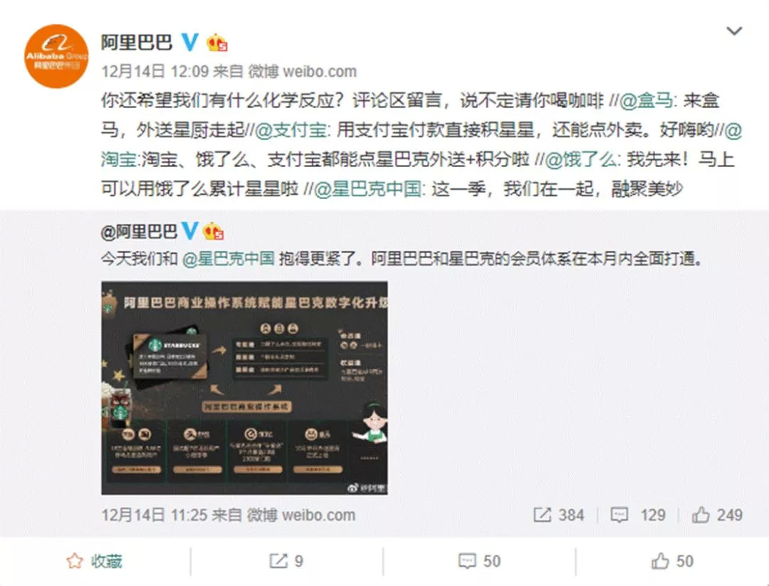 无奈之下,星巴克只能选择联合饿了么推出外卖业务。阿里巴巴-星巴克项目负责人施全在今年1月份曾表示,星巴克已完成在全国30个城市2000家门店接入外卖外送。同时,双方会员权益互通,联合推出活动来吸引消费者。