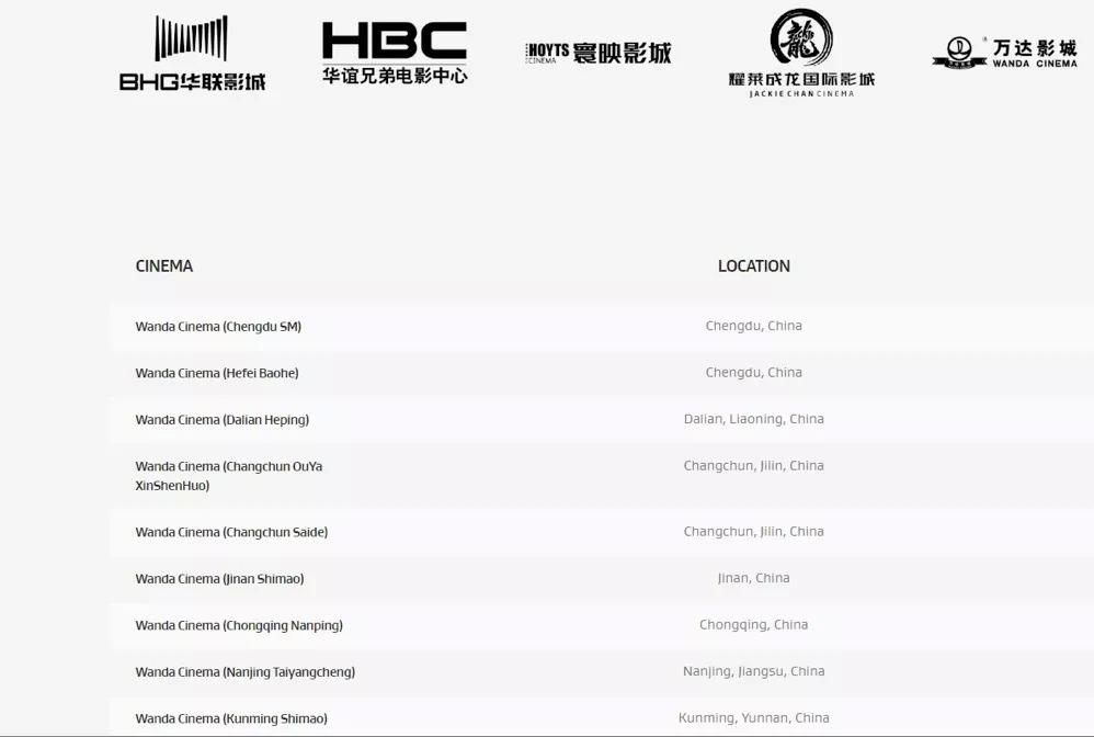 与杜比影院合作的影院公司数量也不多,在美国只有万达旗下的AMC,国内是万达影城、耀莱成龙国际影城、华谊兄弟电影中心等。