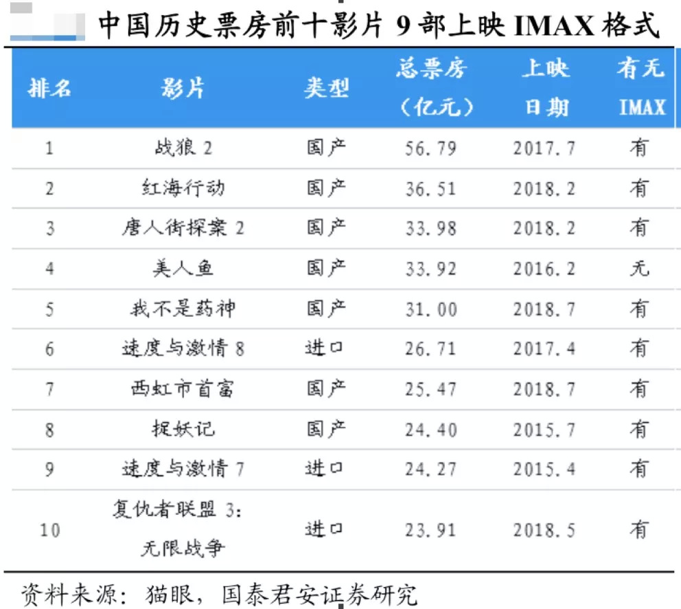 目前,国内票房前十的影片,除了《美人鱼》都有IMAX版本,片源覆盖范围很广,观众不用担心没有IMAX电影看。为了保证优质片源,IMAX成立了专业的选片小组,根据电影样片和实时票房等多种因素来确定要上映的影片。