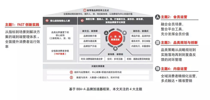 具体来说:本文将重点关注BBA-A中的“明道“与”优术“模块,并通过4大主题,从实际操作层面帮助品牌商梳理以消费者为中心的数字化转型的具体方法。其中4大主题包括: FAST创新实践, 会员运营,内容运营,以及品类策略与创新。